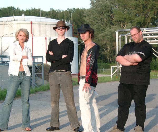 Also ich kann ja nur raten, mir sagt ja keiner was... Naja, gut, also ganz rechts ham wir natürlich Metal, dann der Bandleader, dann der Drummer, und ganz links Katja... schätze mal Sängerin... (Metal oder TOCC, korrigiert mich wenn ich mich täusch ;)) Und sie spielen sowas Zwischen Country und Rock... würd ich etz mal so raten ;)